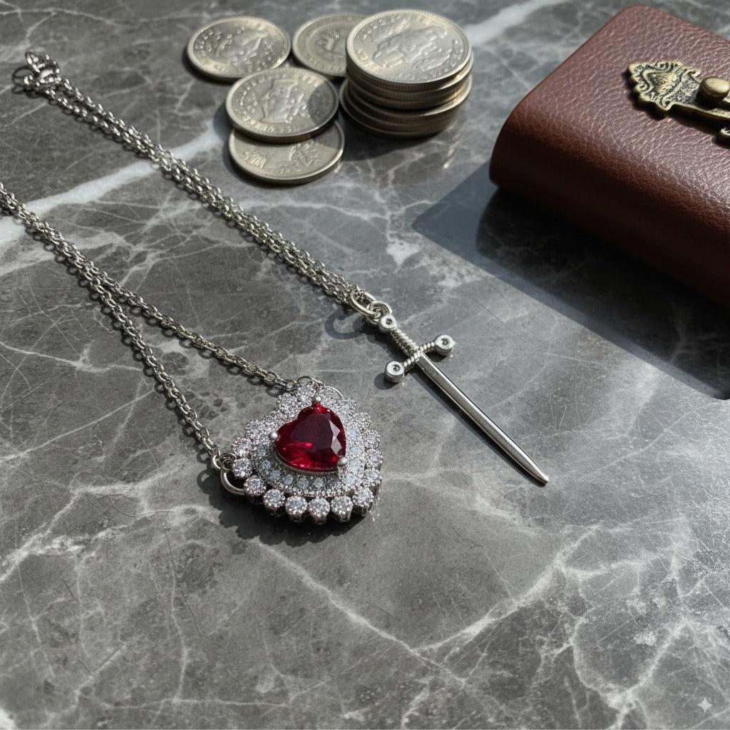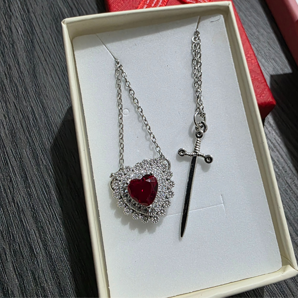 - Dijes: 3.5 cm x 3 cm (Solo se manejan ambos dijes juntos, corazon y espada)